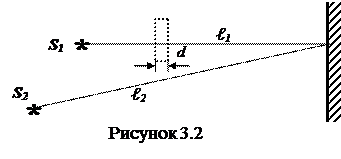 3.2.1 Задача 1. Расстояние L от щелей до экрана в опыте Юнга равно 1 м. Определить расстояние между щелями, если на отрезке длиной l= 1 cм укладывается N =10 темных интерференционных полос. Длина волны