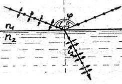 3.2.6 Задача 6. Естественный луч света падает на полированную поверхность стеклянной пластины, погруженной в жидкость. Отраженный от пластины луч образует угол j = 970 с падающим лучом (рис.3.4). Определить показатель преломления n 1 жидкости, если отраженный свет максимально поляризован.