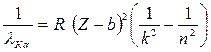 где l - длина волны фотона; R – постоянная Ридберга; Z – заряд ядра в относительных единицах; n 1 – номер орбиты, на которую перешел электрон; n 2 - номер орбиты, с которой перешел электрон (n 1 и n 2 – главные квантовые числа).