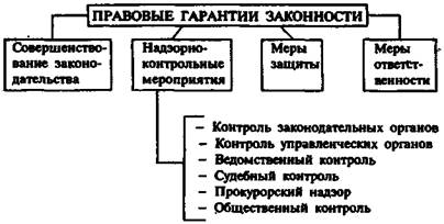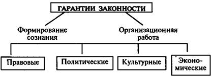 Под гарантиями законности понимаются взятые в системе объективно сложившиеся факторы и специально предпринимаемые меры упрочения режима точного и неуклонного воплощения требований закона в жизнь.