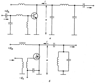 Рис. 8.1. Схемы ГВВ на транзисторах: а) с биполярным,