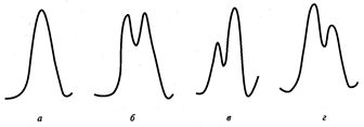 В недонапряженном и граничном режимах импульсы коллекторного тока при работе с отсечкой имеют косинусоидальную форму. Примеры форм импульса коллекторного тока в перенапряженном режиме работы показаны на рис. 8.2,б-г. При наличии только активной составляющей в нагрузке провал в импульсе располагается посредине (см. рис. 8.2,б), при добавлении к ней емкости - сдвигается влево (см. рис. 8.2,в), индуктивности - вправо (см. рис. 8.2,г).
