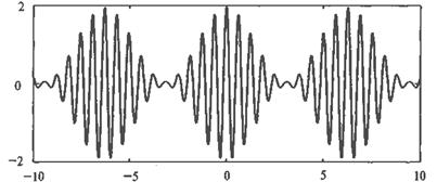 где m=Uмод/U0£1 - коэффициент амплитудной модуляции; w0 - частота несущих колебании. График функции (19.4), который можно наблюдать на экране осциллографа, приведен на рис. 19.4.