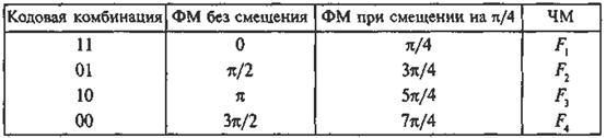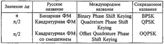В зависимости от значения фазы Dj наиболее часто используются разновидности ФМ, приведенные в табл. 22.1.