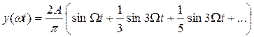 Разложим в ряд Фурье периодическое колебание прямоугольной формы (меандр):