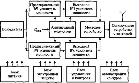 Рис. 24.1. Типовая схема радиопередатчика с амплитудной