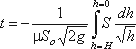 Если будет известен закон изменения площади S по высоте h, то интеграл можно подсчитать. Для призматического сосуда S = const (рис.5.11), следовательно, время его полного опорожнения