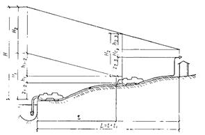 При перекачке воды первый насос подает воду во всасывающий патрубок второго насоса, а последний подает воду в напорную рукавную линию с пожарными стволами (рис. 2.4). Для бесперебойной работы системы в конце каждой ступени перекачки (у всасывающего патрубка последующего насоса) должен быть свободный напор h1 равный 10 м. В конечной ступени перекачки (у пожарного ствола) величину Нс принимают равной напору для создания требуемого расхода воды через пожарный ствол.