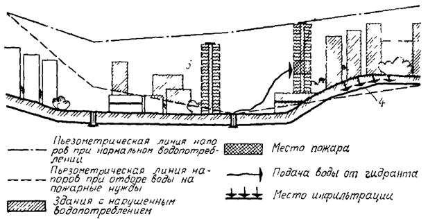 4 — нарушение санитарно-гигиенических условий водоснабжения (образование инфильтрации, вызванной разрежением в сети) в результате отбора воды при тушении пожаров