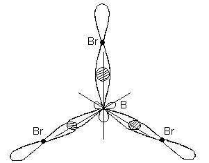 В образовании трех химических связей в молекуле ВВr3 участвуют одна s- и две р-орбитали, расположенные на разных подуровнях и обладающие разной формой и разной энергией: