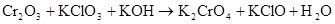 Степень окисления хрома повышается от +3 до +6, хлора понижается от +5 до +1, следовательно