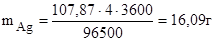 Подставив в формулу значения Мэ(Ag) = 107,87 г/моль, J = 4А,