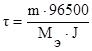 По законам Фарадея масса выделившихся на электродах веществ (m) определяется по формуле: