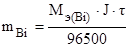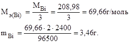 По законам Фарадея рассчитаем массу выделившегося на катоде висмута: