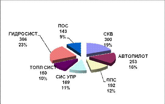 Суммарный парк авиакомпаний «Глобус» и «Сибирь» составляет 12 самолетов данного типа, распределение отказов и неисправностей которых по системам представлено диаграммой (см. рис. 1.3)
