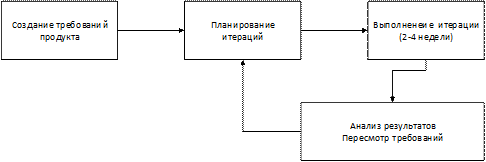 Работа начинается с формирования требований ко всему продукту, из них выбирается самое актуальное и создается план следующей итерации, в течении итерации планы не меняются. Итерация заканчивается созданием работоспособной версии продукта, который можно предъявить заказчику. После этого результаты обсуждаются и требования к продукту корректируются. В SCRAM выделяют 3 вида ролей: