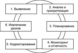 Процесс управления рисками MSF определяет шесть логических шагов, посредством которых проектная группа управляет текущими рисками, разрабатывает и исполняет стратегии управления рисками и извлекает уроки из своего опыта для использования на уровне всего предприятия.