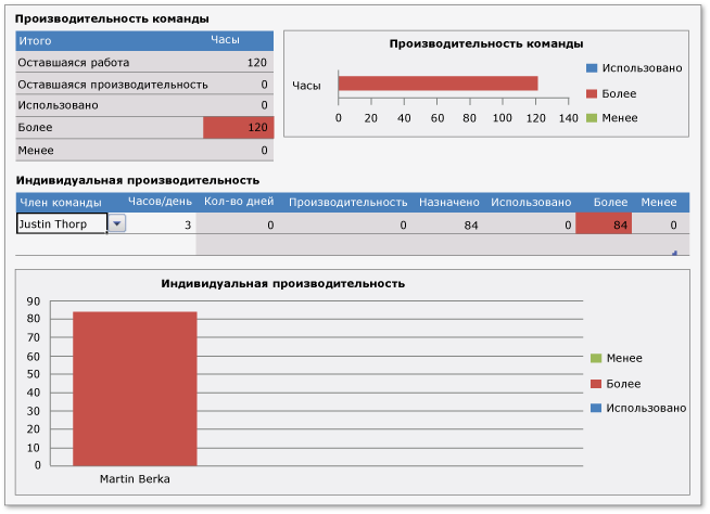 Чтобы убедиться в наличии достаточного количества рабочих часов для выполнения всех задач, команда использует книгу "Невыполненная работа по итерации".Если для спринта запланировано больше работ, чем может выполнить команда, необходимо удалить часть описаний функциональности пользователей с наименьшим приоритетом, чтобы запланированные работы соответствовали производительности команды, определенной для спринта.Более мелкие описания функциональности с низким приоритетом могут быть заменены на более крупные описания функциональности, которые невозможно реализовать в течение одного спринта.