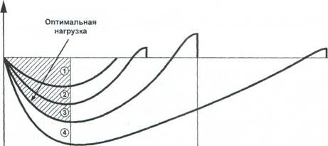 Таким образом, для каждого индивидуума существует оптимальный уровень нагрузки (рис. 4). Задача персонального тренера состоит, в том числе в том, чтобы, обеспечив высокий уровень нагрузок, не допускать превышения его пороговой величины, когда нагрузка повлечет снижение тренировочного эффекта, замедлит скорость восстановительных процессов, приведет к возникновению опасности перенапряжения и срыва адаптационных механизмов.