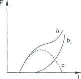 Сплошная линия (а) - общая сила тяги; сплошная линия (Ь) - сила тяги мышцы при ее пассивном состоянии;