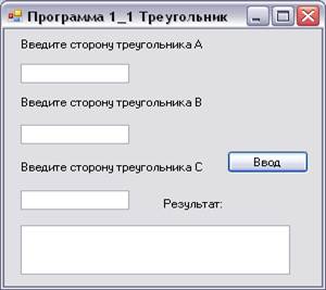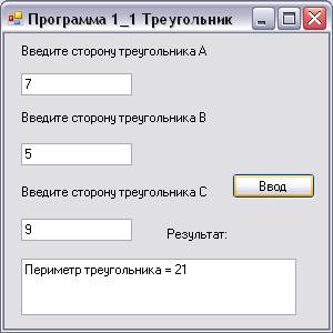 Рассмотреть пример использования формы для создания приложения, работающего в системе Windows. В качестве первого примера выбрана известная задача вычисления периметра треугольника.