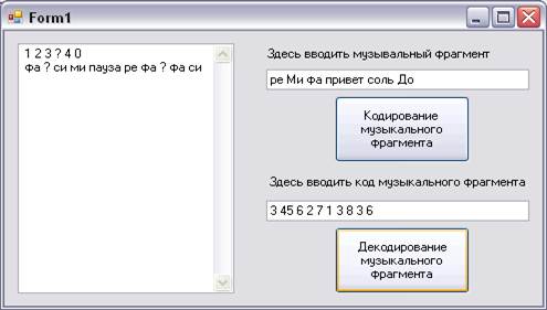 Объявляем интерфейс ItextNoti, содержащий два метода – кодирование (словесный текст нот заменяется цифрами от 0 до 7) и декодирование (текст, представленный цифрами от 0 до 7, заменяется словесным текстом нот).