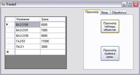 Как и во всех учебных программах в данном примере основное внимание уделялось технологии использования новых элементов управления и классов, а не «содержательной» стороне объектов этих классов. Некоторые значения цены или марки автомобилей взяты, что называется «с потолка».