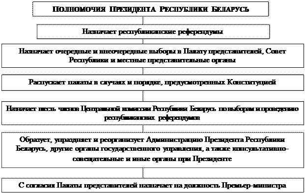 | | | и другие полномочия, согласно ст.84 Конституции Республики Беларусь | |