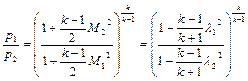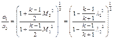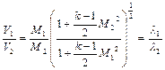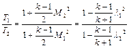 Учитывая, что параметры торможения постоянны для всех точек данного потока газа, из ранее приведенных равенств получим отношение параметров для двух (обозначенных индексами 1 и 2) произвольных сечений данного потока, если известны в этих сечениях М или