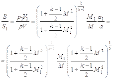 Пользуясь уравнением (2.13) и изэнтропическими формулами, найдем связь между параметрами одномерного потока и площадью сечения, заданной в виде функции от координаты x. Действительно, согласно (2.13) имеем (индекс «1» присвоим какому-нибудь фиксированному сечению трубы):