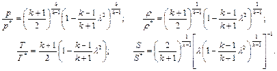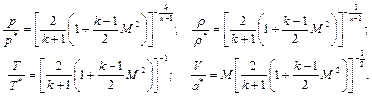 Часто встречающимся комбинациям параметров присвоили условные обозначения и назвали газодинамическими функциями. Значения газодинамических функций в зависимости от