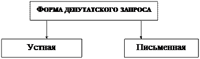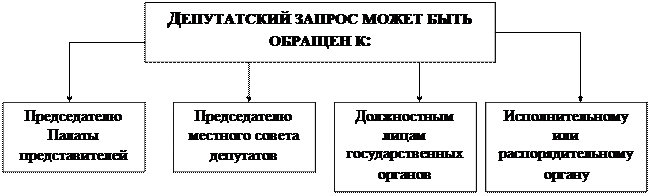 Депутатский запрос – заявляемое депутатом или группой депутатов на сессии требование дать официальное разъяснение или изложить позицию по вопросам, представляющим общественный интерес.