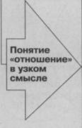 | Отношение — готовность к определенному взаимодействию, реально действующая связь в рамках «субъект—объект», «субъект—субъект» |