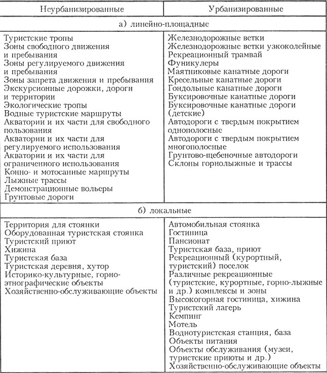 Варианты рекреационного освоения национального парка в зависимости от конкретных природных и социально-экономических условий его территории и взаимосвязей с окружающим регионом должны разрабатываться с использованием следующих объектов в определенном их отборе и сочетании: