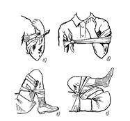 Другим надежным способом остановки кровотечения из ран конечностей является максимальное сгибание конечности в суставах с фиксацией ее в таком положении (рисунок 4).