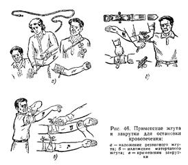 Рисунок 3 - Применение жгута и закрутки для остановки кровотечения: