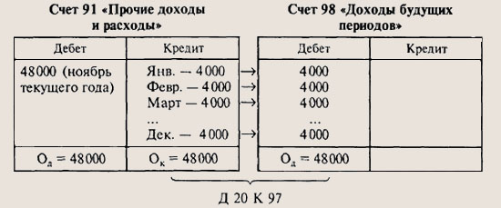 Пример 4.6. Ведение учета на счете 98 «Доходы будущих периодов».