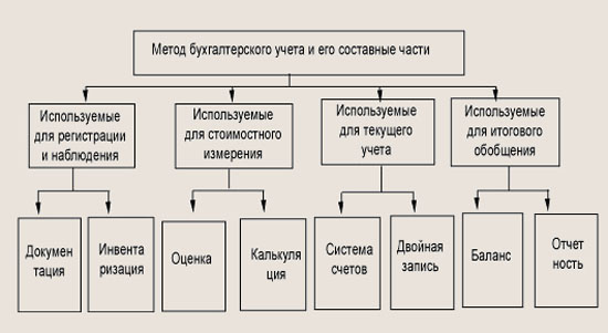 Таким образом, метод бухгалтерского учета представляет собой совокупность приемов регистрации (документация и инвентаризация), стоимостного измерения (оценка и калькуляция), текущей группировки (стоимость счетов и двойная запись) и итогового обобщения (баланс и отчетность) фактов хозяйственной деятельности.