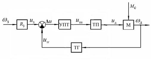 uз = kз ωз, uтг = kтг ωд(t), uтп = kупт (uз - uтг) (1.10.)