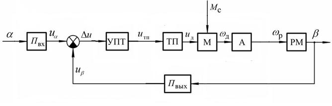 УПТ – усилитель постоянного тока, ТП – тиристорный преобразователь,
