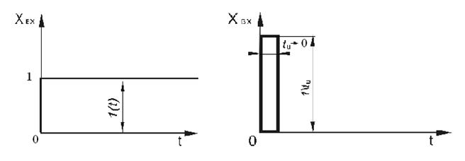 При исследовании системы или ее элементарных звеньев чаще всего рассматривается реакция системы на единичное ступенчатое воздействие или на единичную импульсную функцию. Данная реакция системы является типичной при реальном воздействии, т.е. реальное воздействие можно разложить на сумму единичных воздействий. Графическое представление этих воздействий изображено на рисунке 24.