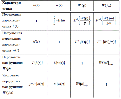 На рисунке 24.1. представлена таблица, в которой указана взаимосвязь характеристик систем автоматического управления между собой и передаточной функцией.