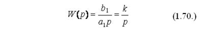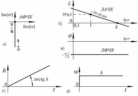 В данном случае k – передаточный коэффициент звена, размерность которого определяется отношением размерности скорости изменения выходного параметра к размерности входного.