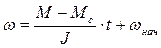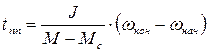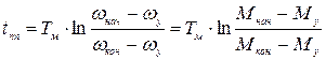 Как видим, скорость ω линейно зависит от времени, момент двигателя М от времени не зависит. Из решения уравнения движения определим время переходного процесса tпп при изменении скорости от