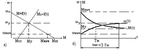 . Начальные и установившиеся значения частоты вращения и момента определяются из установившегося режима работы ЭП.