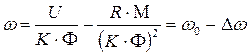 На практике используется электромеханическая характеристика двигателя, показывающая зависимость частоты вращения от тока якоря. Из уравнений (4.1) и (4.2) получим