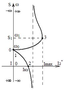 - точка максимального значения тока ротора. Она располагается в области отрицательных скольжений.