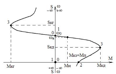 - точки максимума момента в двигательном и генераторном режимах соответственно;