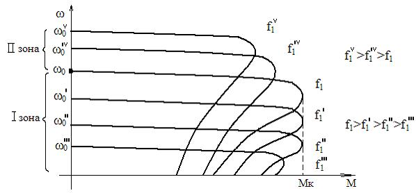 Достоинством частотного метода является широкий диапазон регулирования и высокое качество характеристик. Механические характеристики Д будут выглядеть следующим образом (рис. 5.10).