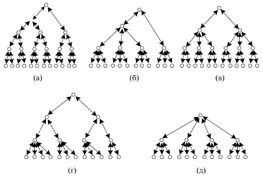 Согласно изложенному, наилучшая иерархическая структура из допустимых структур, приведенных на рис. 2.3, показана в подпункте "д". Среди структур, имеющих четыре уровня управления (рис. 2.3б, в, г), лучшая структура показана на рис. 2.3б, т. к. она имеет минимальное число подсистем высших уровней.